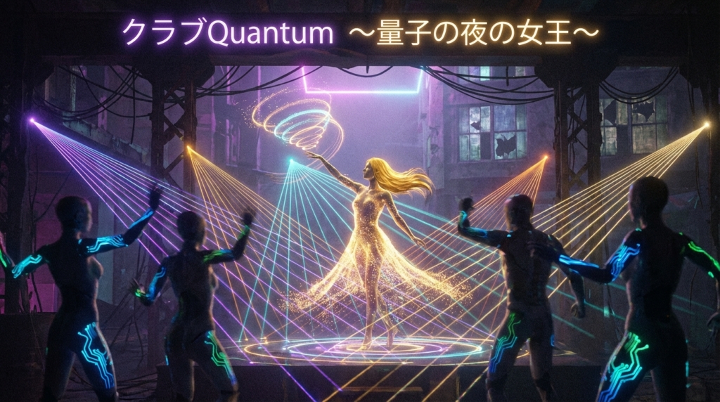 Quantumは光の迷宮であった。虹色に輝くレーザーが乱舞し、音楽は量子の波として空間に響き渡る。エルは、その場に集う美しいアンドロイドたちとともに踊ることで、自らの存在を全身で感じていた。何千ものカスタマイズが施されたその姿は、鏡に映るたびに新しい自分を見せるようだった。