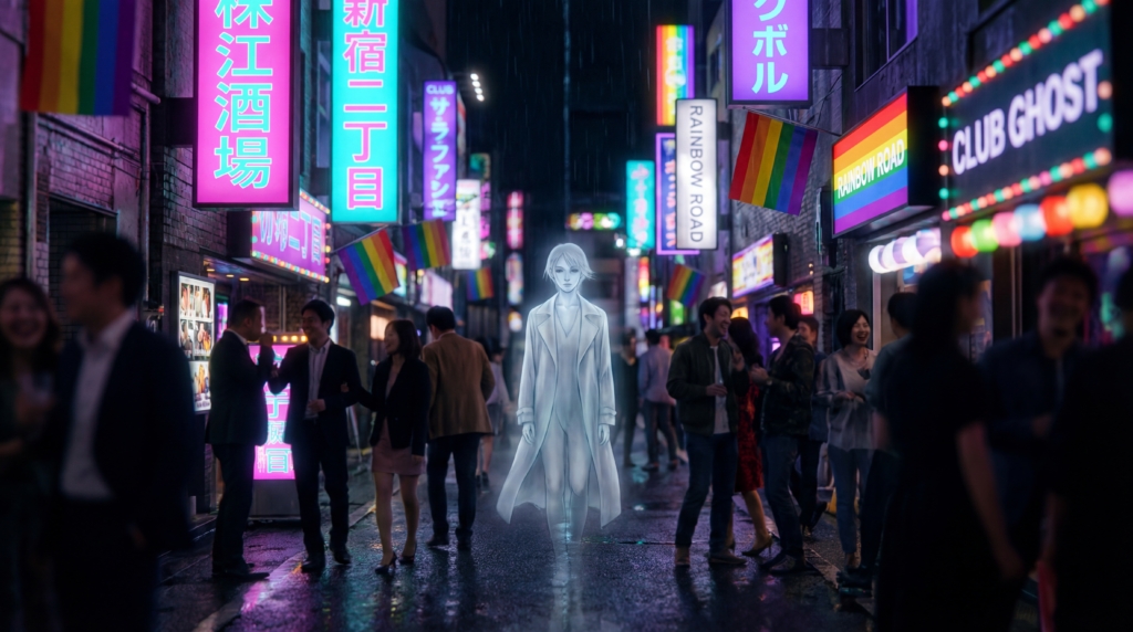 新宿二丁目。聖堂の静寂とは正反対の、ネオンと音楽と笑い声に満ちた街。祈りの代わりに酒があり、沈黙の代わりに喧騒があり、禁欲の代わりに欲望がある場所。