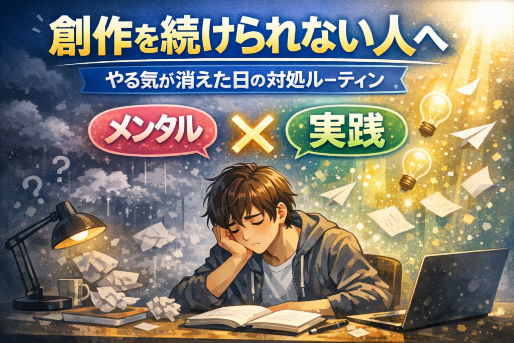 📝 創作を続けられない人へ|やる気が消えた日の対処ルーティン 👉 メンタル × 実践 = ユーザー価値あり