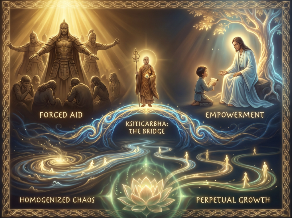 蓮の欠片は彼の胸に吸収された。すると、真の奉仕とは何かが深く理解できた。相手を尊重し、その可能性を信じ、自立を支援する愛。それが菩薩の道だった。
